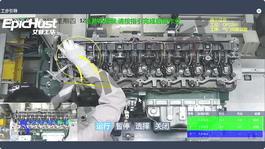 參照標準作業(yè)實時引導(dǎo)工人操作,實時獲取工人動作信息,通過提示減少錯裝漏裝,對作業(yè)過程實時監(jiān)控預(yù)警,實現(xiàn)對操作工人的智能工步引導(dǎo),提高裝配效率和質(zhì)量