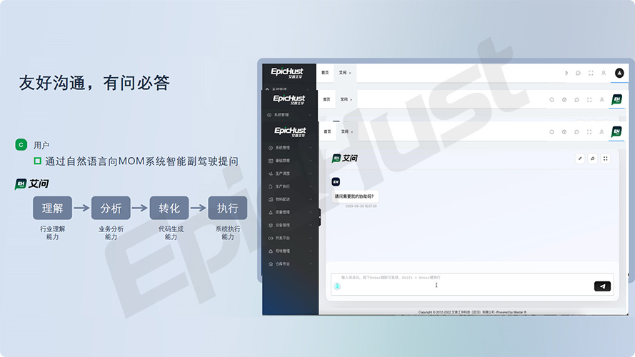 集成先進(jìn)的大語(yǔ)言模型技術(shù),提供與制造運(yùn)營(yíng)管理(MOM)無(wú)縫對(duì)接的智能副駕駛應(yīng)用,以自然語(yǔ)言處理能力洞察業(yè)務(wù)需求,定制化擴(kuò)展,優(yōu)化企業(yè)用戶的管理體驗(yàn)。
